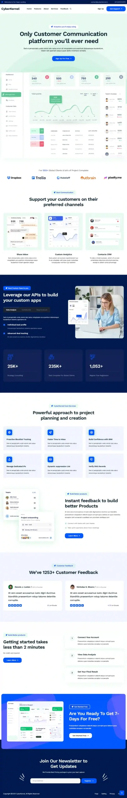 The SaaS Demo Website is a purpose-built digital product designed specifically for Software as a Service companies. This demo showcases how CyberKernel builds SaaS websites that clearly communicate value, drive free trials or demo sign-ups, and support long-term user acquisition and retention.
